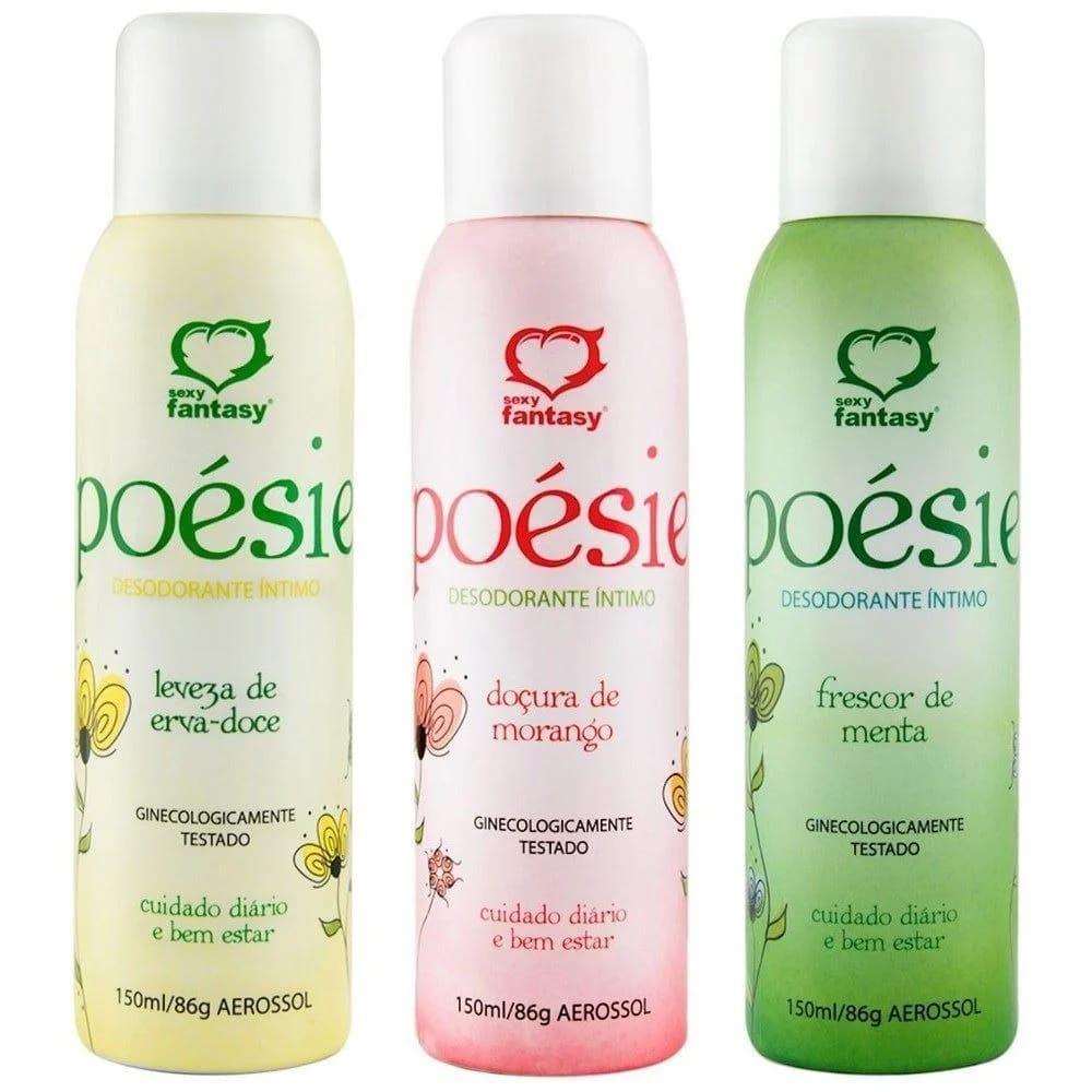 Poésie é um desodorante íntimo em aerossol que garante perfume e proteção durante o dia todo. Desenvolvido com ingredientes que combatem o mau odor e transpiração da região íntima, trazendo frescor por longa duração e toque seco.