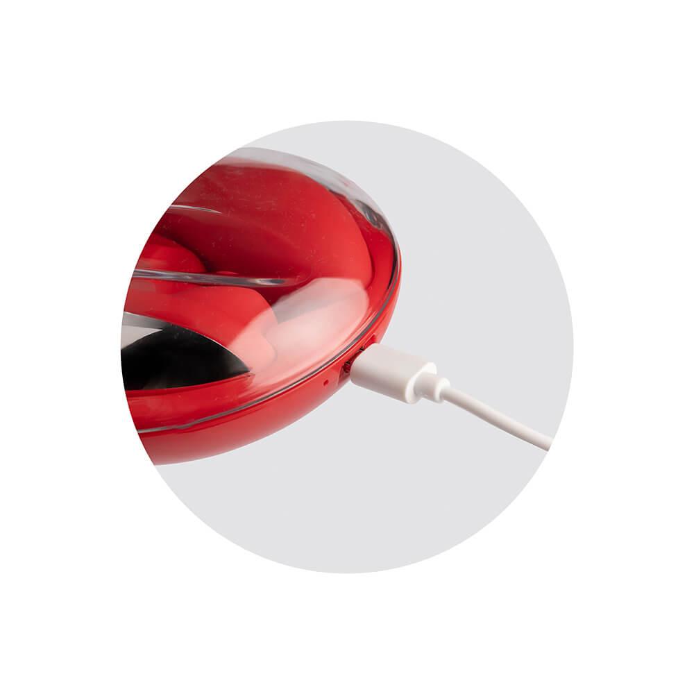 Possui 10 modos de vibrações e 10 modos de pulsação para estímulo clitoriano. Resistente à água e com carregamento magnético (incluso caixa e cabo para carregamento)