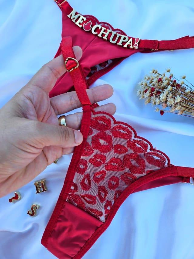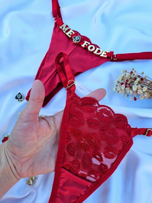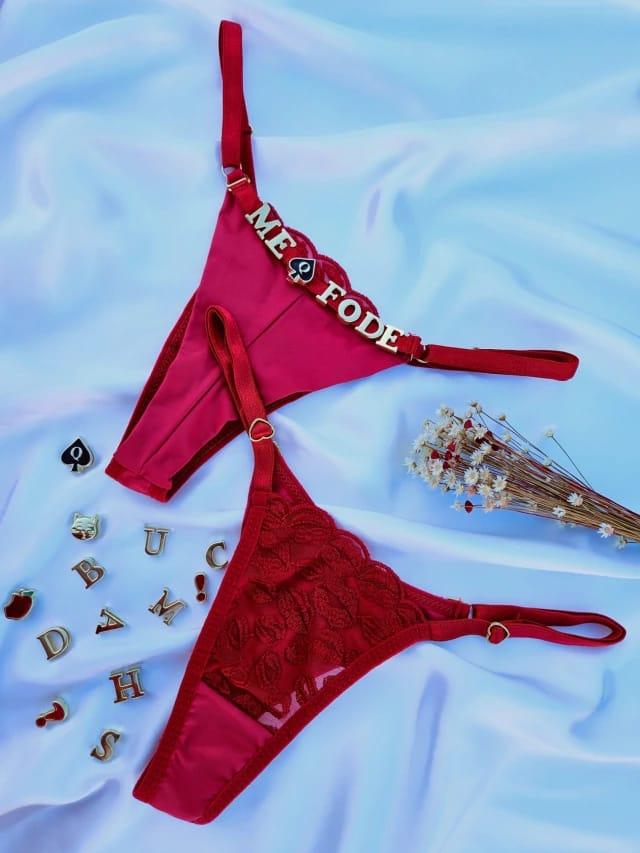 Fio duplo com regulagem lateral e tule bordado boquinha.