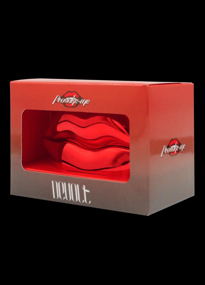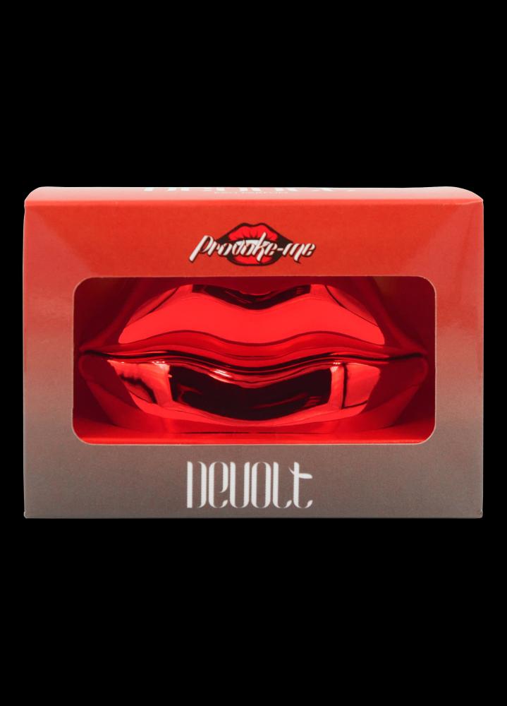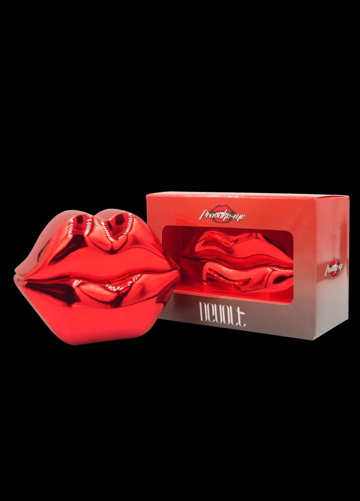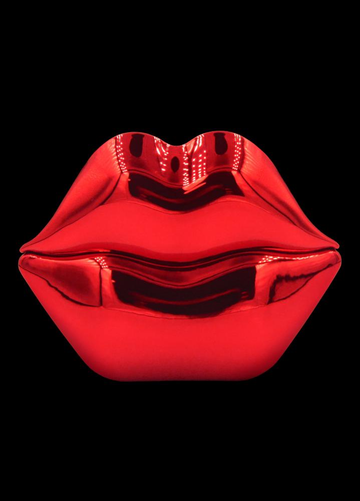 O design icônico do frasco, em forma de lábios metálicos vermelhos, reforça o conceito de provocação e desejo.